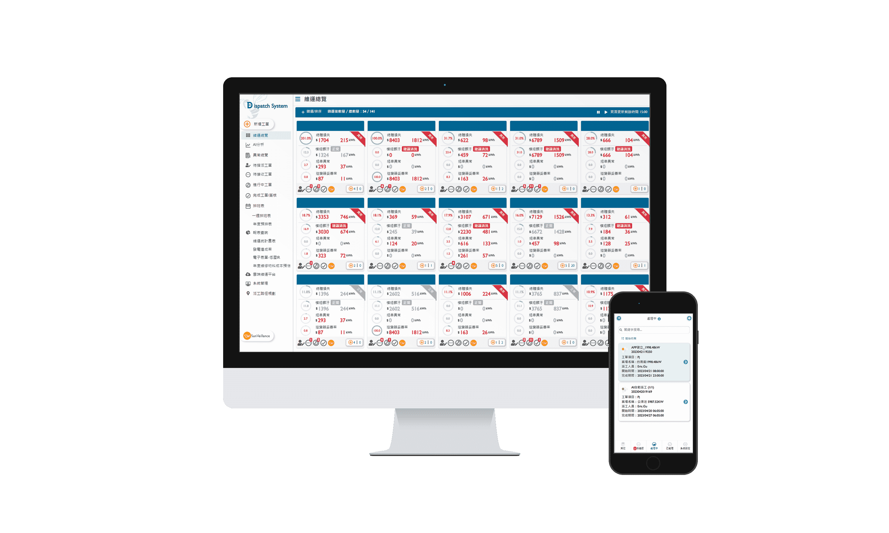 全流程运维管理包括云端监控工具、、AI分析与智慧自动派工及运维APP,,,,实现电厂自主管理。。。